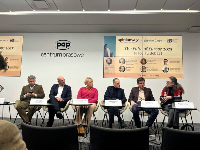 The presentation at the PAP Press Center was accompanied by a debate moderated by Karol Reczkin (MISO Analysis Center). Participants included: Nicolas Curtelin and Bruno Jeanbart (OpinionWay Group), Maciej Legutko (Employers of Poland), Prof. Małgorzata Molęda-Zdziech (SGH), journalist Konrad Piasecki (TVN24), and Prof. Krystyna Skarżyńska (SWPS University).